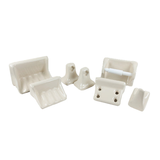 INCLUYE: Jabonera Chica Jabonera Grande Cepillera Gancho Soportes para toallero (2 pzs izquierdo y derecho) Toallero Papelera Tubo portarrollo con...