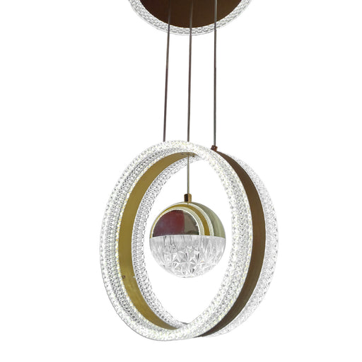 Ver detallesCandil LED para techo con diseño de anillos entrelazados Acabado cromado moderno y elegante Anillo principal de 50 cm de diámetro Altura ajust...