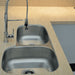 Fregadero doble de línea clásica elaborado a partir de acero inoxidable satinado. De submontar. Calibre 22. Accesorios se venden por separado.