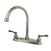 Mezcladora al piso Rugo 8-LS para fregadero. Modelo Liberia con diseño moderno y elegante. Cuenta con sistema de cerámico para mayor durabilidad y acabado satinado para una apariencia sofisticada. Facilita el control de temperatura y caudal de agua en su cocina.