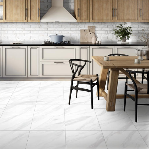 Piso o muro Sinam en tonalidad blanco en caja de 1.46 m2 Medidas: 60 x 60 cm Cuerpo: Cerámico Acabado: Brillante Diseño: Marmoleado