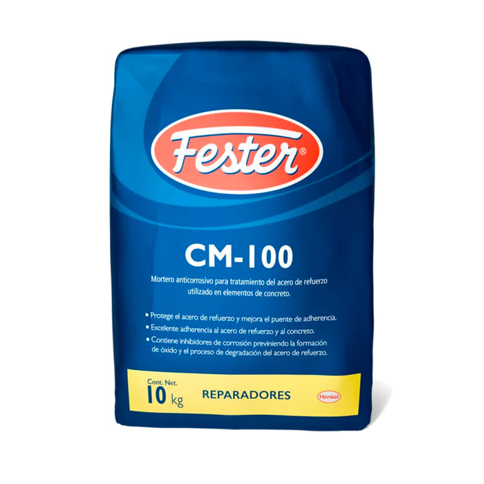 Protege el acero de refuerzo con Mortero Reparador Anticorrosivo Fester CM-100. Este mortero a base de cemento, resinas de alta calidad e inhibidores de corrosión mejora la adherencia y garantiza la durabilidad de elementos de concreto. Con su contenido de inhibidores de corrosión, ofrece una protección adicional contra el desgaste y la corrosión.